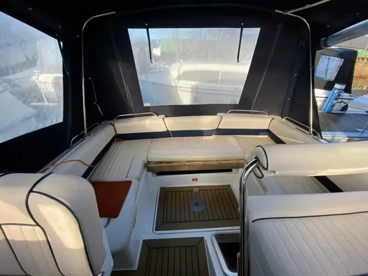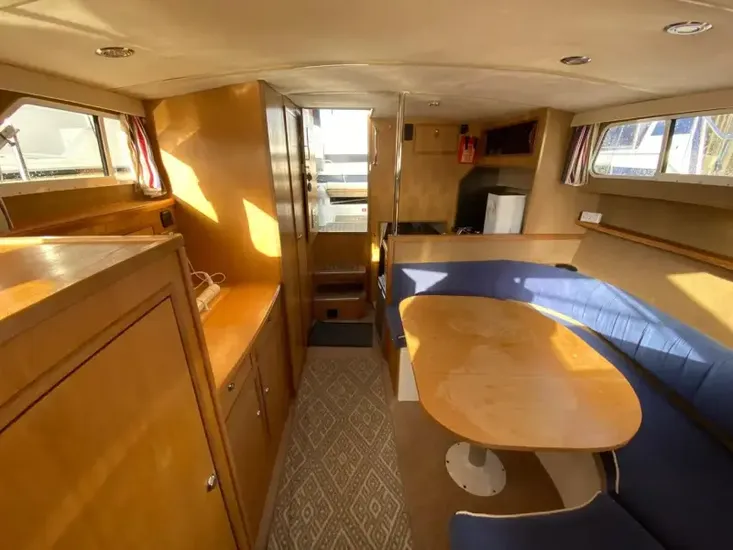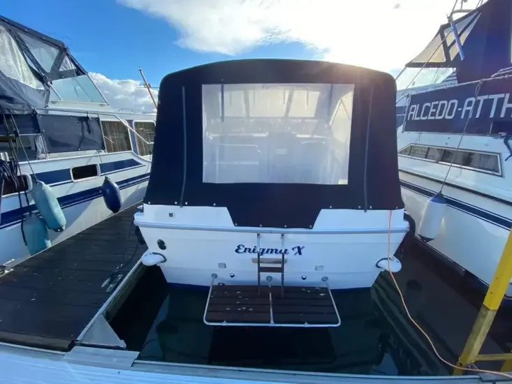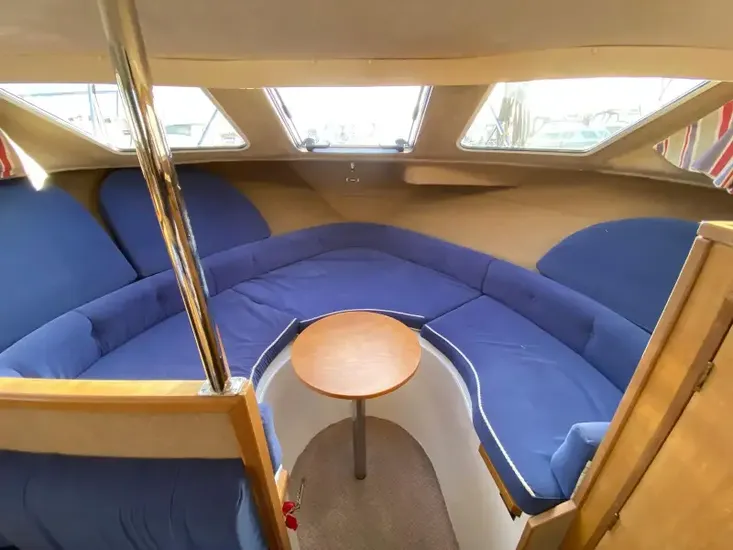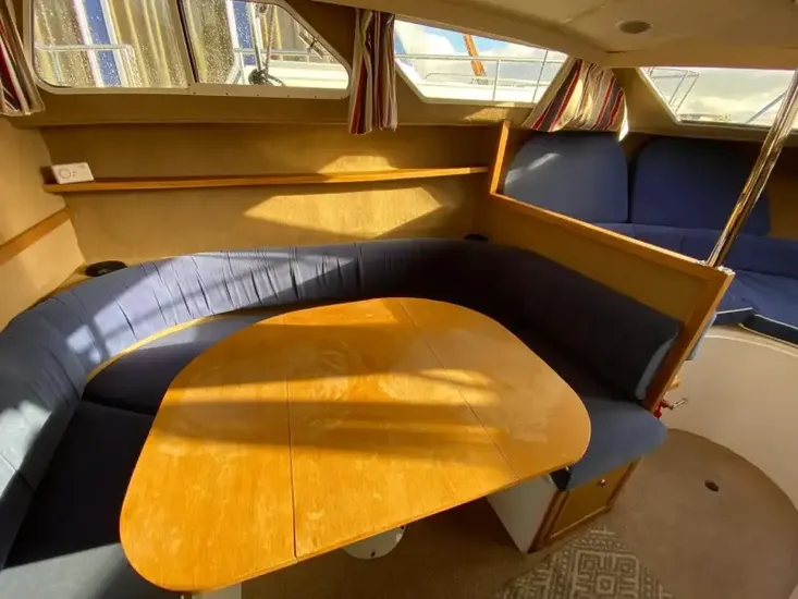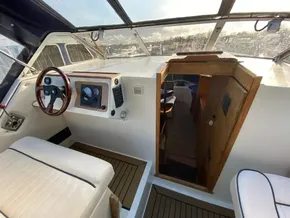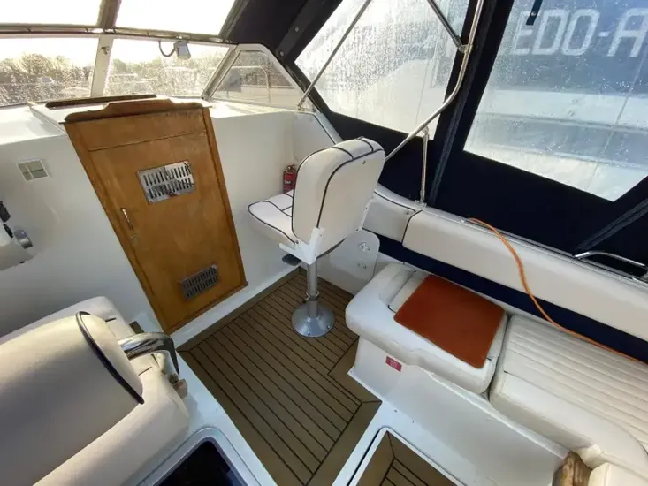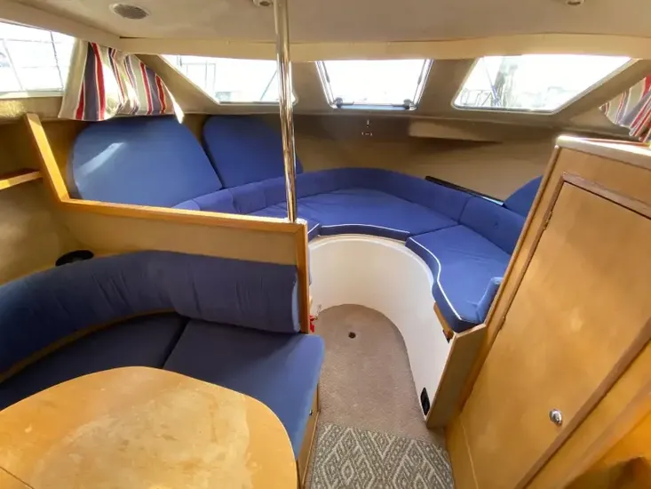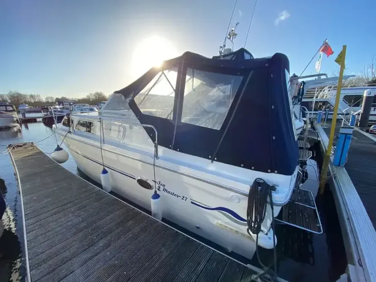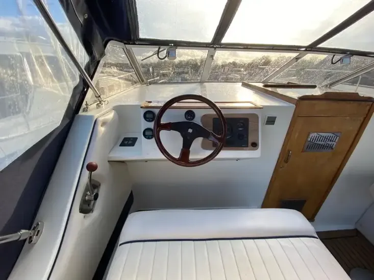 Enigma X is a 3 owner example of the Seamaster 27 manufactured by Viking Mouldings, the boat offers excellent river navigability including the upper reaches of the Thames as it features a folding windscreen. Power by an inboard shaft drive diesel with a bow thrust the Seamaster 27 is the perfect design for low speed inland cruising. The Boat features a spacious cockpit with seating for 6/8 with ease.
