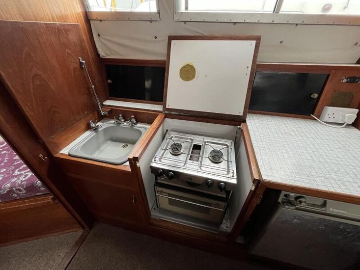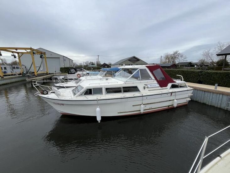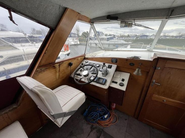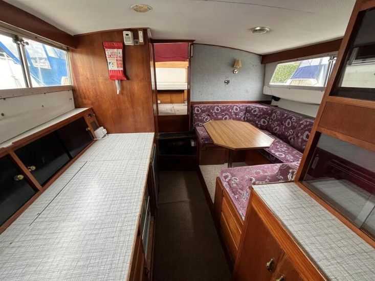 Seamaster 30 - Circa 1980 - Powered by a Perkins diesel engine. 6 berth accommodation, shower, Electrolux fridge, hob oven and grill, hot and cold pressurised water system , anchor winch, davits, Nasa speed and depth, webasto warm air heating, shore power, Sought after diesel and shaft configuration, A spacious family starter boat for exploring the waterways.